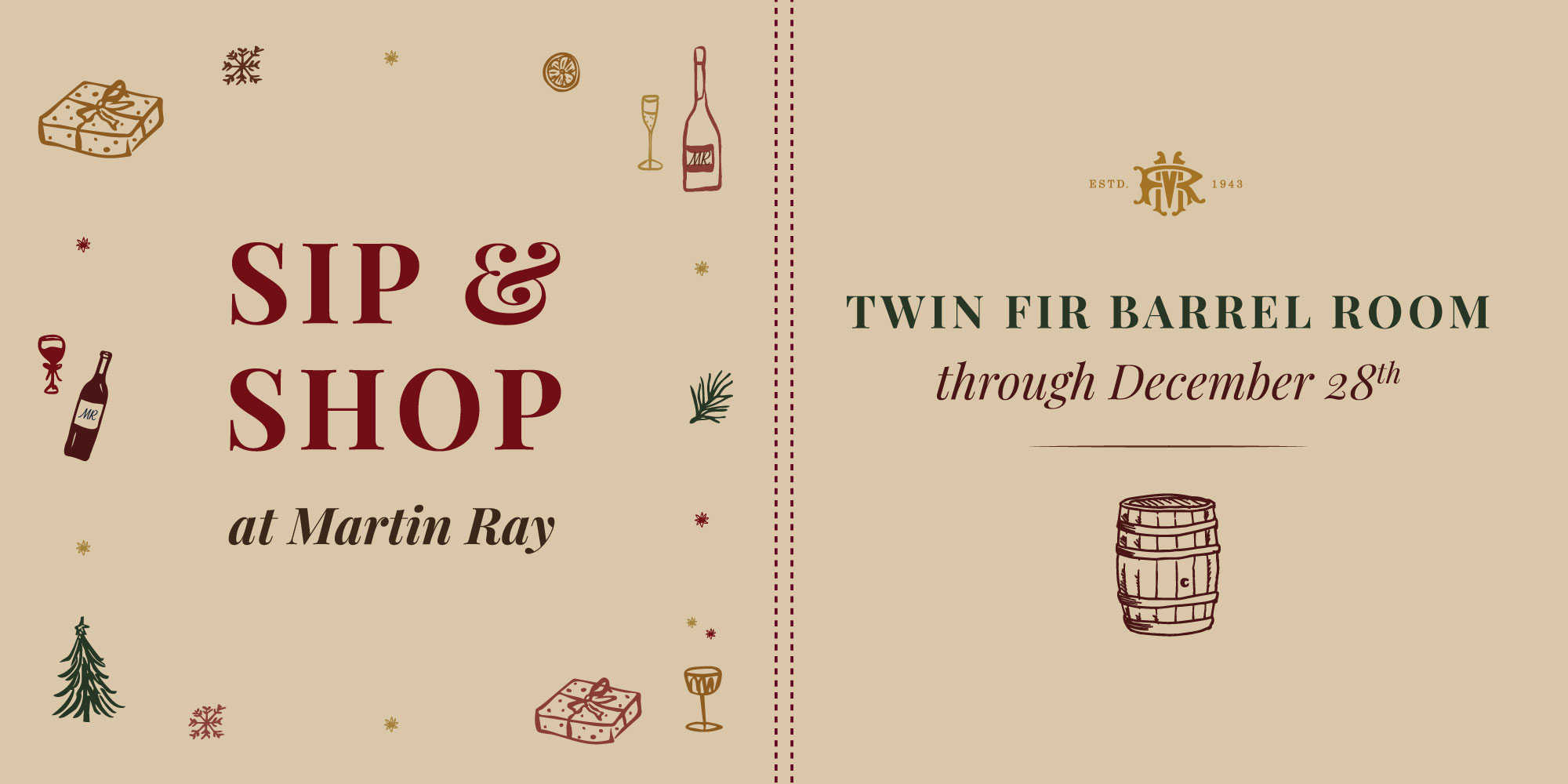 Enjoy a festive sip-and-shop experience featuring exceptional gifts from local artisans and an exclusive selection of large-format wines. Wines are available by the taste/glass/bottle during your shopping experience.