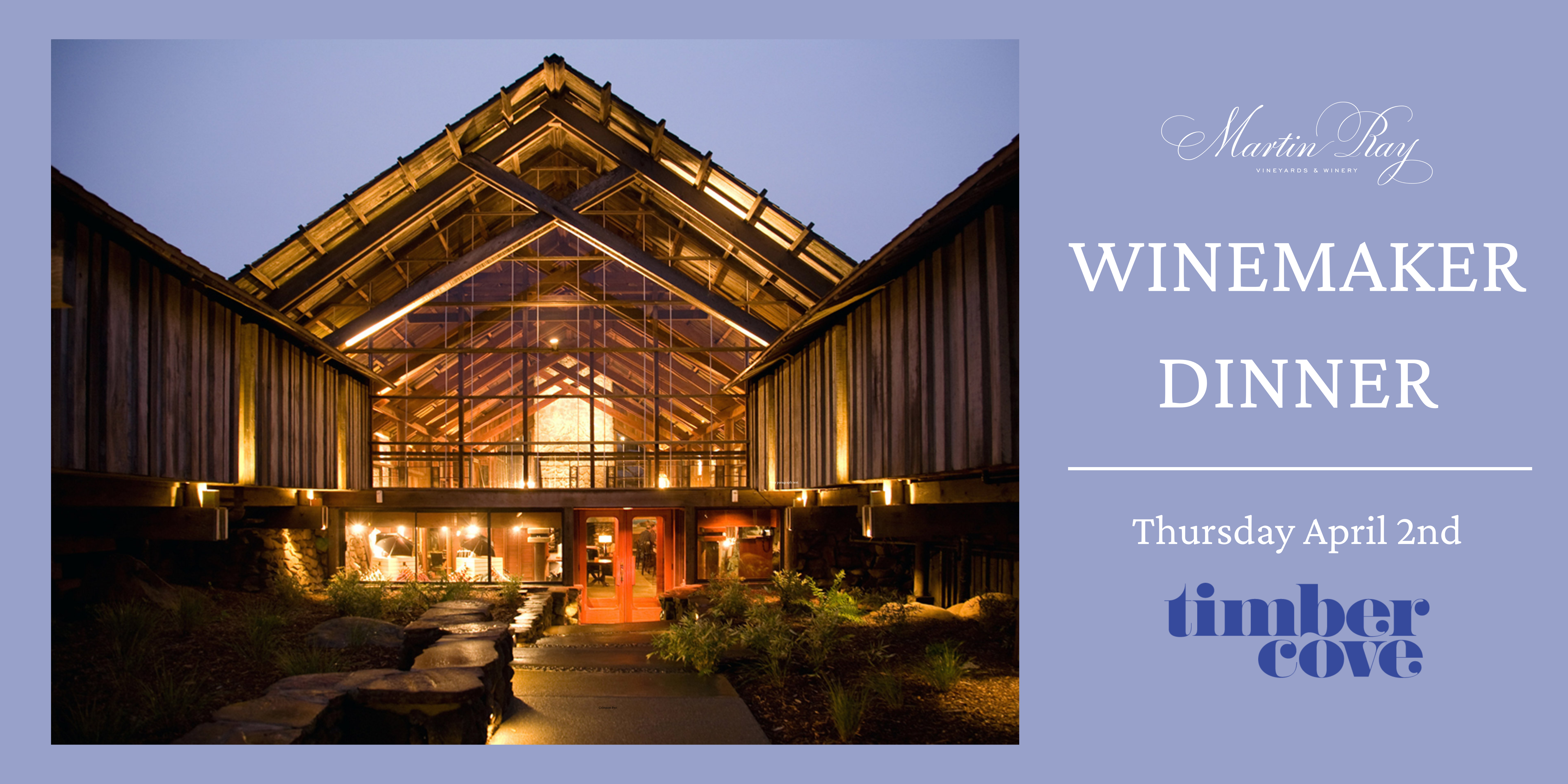 Join us for an intimate Winemaker Dinner at Timber Cove Resort’s Coast Kitchen. Enjoy a multi-course, seasonal menu thoughtfully paired with exceptional wines, accompanied by the Martin Ray Winemaking Team.